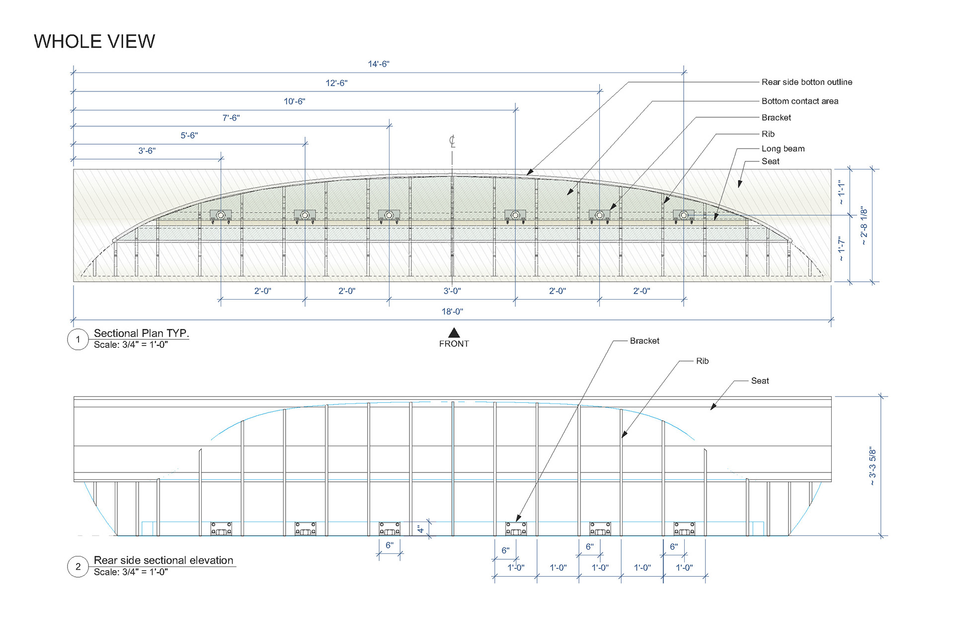 Martin Puryear andĀ Michael Hurwitz Curved Bench 2018